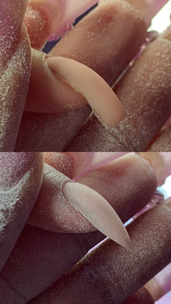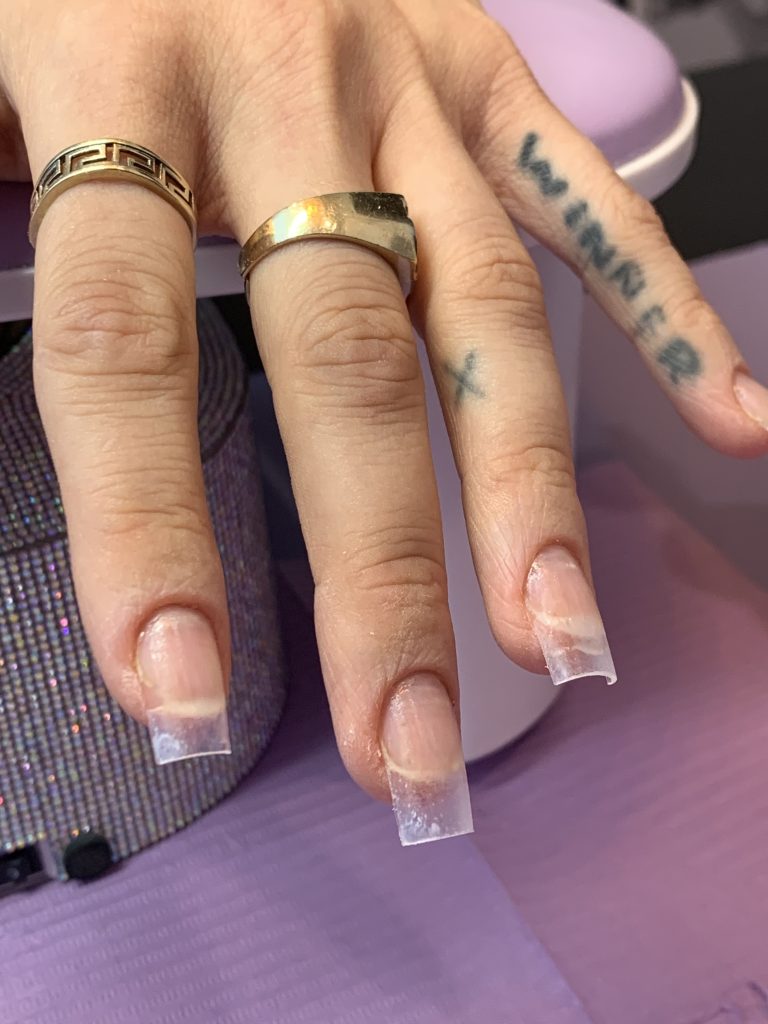 You have a set of nails on, that were not previously done by Tiki Hut Nails.